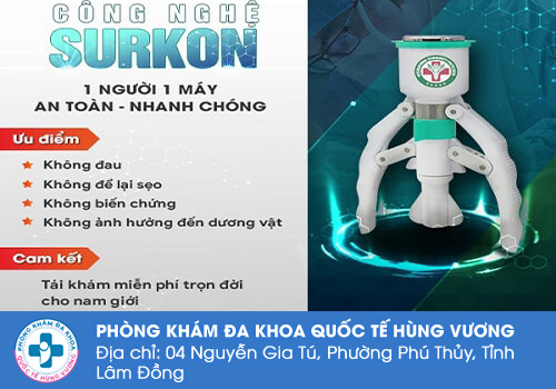 Tại Phòng Khám Đa Khoa Quốc Tế Hùng Vương – 4 Nguyễn Gia Tú, P. Phú Thuỷ, Tỉnh Lâm Đồng là cơ sở y tế chuyên khoa về bệnh xã hội uy tín, nơi quy tụ bác sĩ giỏi, máy móc hiện đại, dịch vụ tận tâm, giúp người bệnh an tâm điều trị hiệu quả.