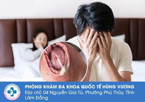++ Tiếp đến là bao quy đầu chảy mủ xanh, vàng hoặc trắng, đặc biệt vào buổi sáng sớm khi ngủ dậy.