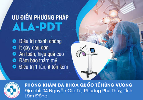 ++ Ở trường hợp nặng, chuyên gia sẽ áp dụng những liệu trình điều trị tiên tiến hơn trong đó phương pháp ALA - PDT được đánh giá tốt chuyên trị sùi mào gà với những ưu điểm như: Nhanh chóng, không gây đau, không chảy máu, không để lại sẹo, hồi phục nhanh và ngăn ngừa bệnh tái phát.