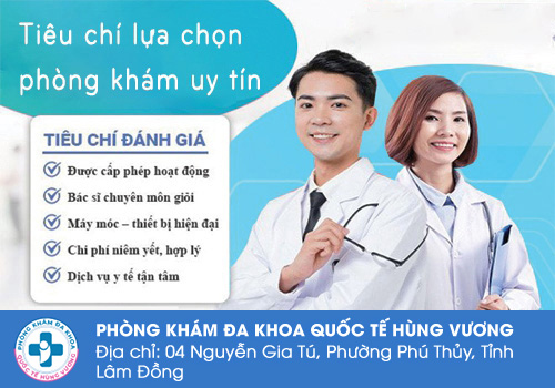 Trên địa bàn Bình Thuận, Phòng Khám Đa Khoa Quốc Tế Hùng Vương (4 Nguyễn Gia Tú, P. Phú Thuỷ, Tỉnh Lâm Đồng) là địa chỉ phòng khám da liễu uy tín, chất lượng trong khám và điều trị các bệnh vùng kín, bệnh lây nhiễm qua đường tình dục, được đông đảo bệnh nhân trên địa bàn thành phố và các tỉnh lân cận tin tưởng tìm đến chữa trị thành công, xây dựng được uy tín và niềm tin cho người bệnh.