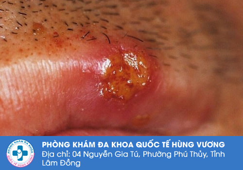 Vết loét thường bắt đầu như một nốt mụn nhỏ, sau đó nhanh chóng phát triển thành vết loét lớn hơn.