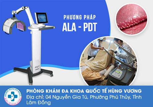 ► Phương pháp ALA-PDT: Kỹ thuật này kích thích phản quan, sản sinh ra một lượng lớn oxy ở mức năng lượng cao để chiếu các tia huỳnh quang lên vùng bệnh nhằm mục tiêu phá hủy các gai sinh dục nhanh chóng