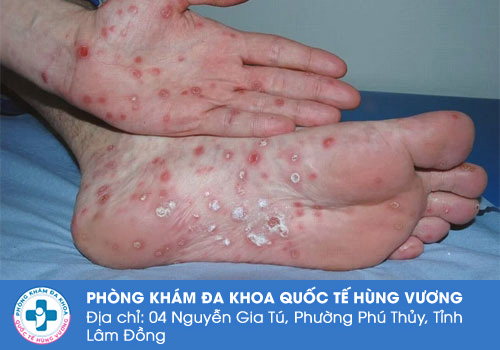 ⇒ Giai đoạn 2: Ở giai đoạn này thì bệnh giang mai đã tiến triển được từ 6 đến 9 tháng với các biểu hiện rất rõ ràng như nổi ban hầu nổi những vết sần như lở loét ở da, phỏng nước,...